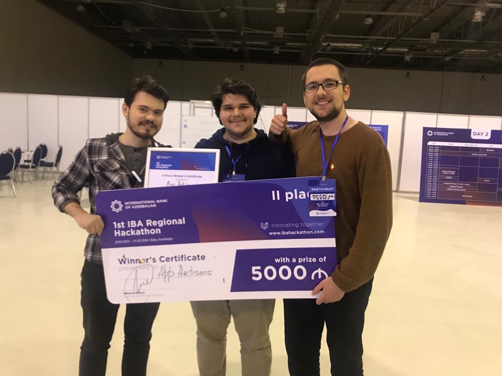 Bölümümüz öğrencilerinden Yusuf Burakhan Sert' in de bulunduğu AppArtisans takımı yüzlerce takım arasından kabul alarak yarı finale çağrıldıkları International Bank of Azerbeycan 1.Bölgesel Hackathon yarışmasında Bakü Expo Center'da ülkemizi temsil ederek, farklı ülkelerden katılımcıların olduğu 40 takım arasından IBA mPOS mobil uygulaması ile 2. 'lik derecesi kazanmışlardır.